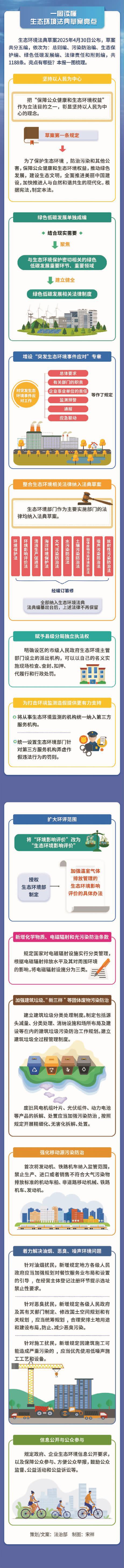 这部承载着护航新时代美丽中国建设历史使命的鸿篇巨制,将现行有效的30多部生态环境法律、100余件行政法规、1000多件地方性法规,以及党的十八大以来生态文明法治实践成果,进行系统整合、编订纂修、集成升华,形成了我们今天看到的法典草案。