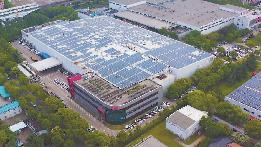 ▲图为闵行开发区某企业的屋顶光伏板。 郑剑摄