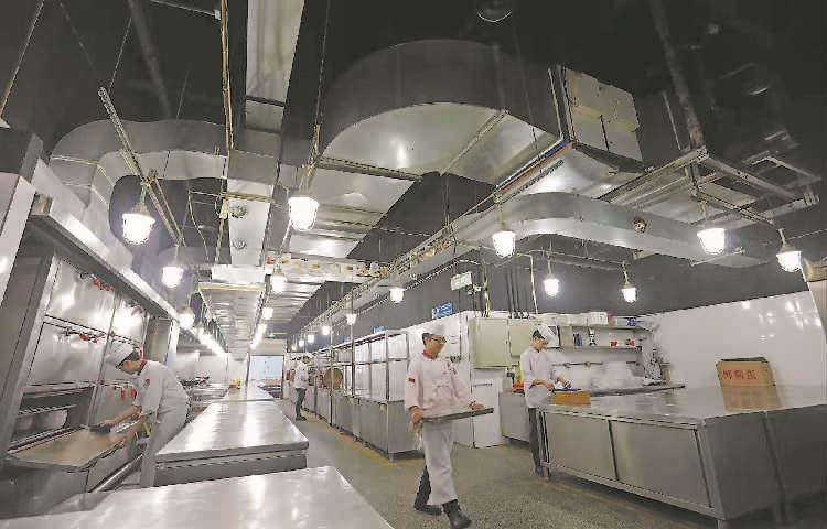 ▼重庆市九龙坡区一酒楼后厨,安装了油烟治理系统。