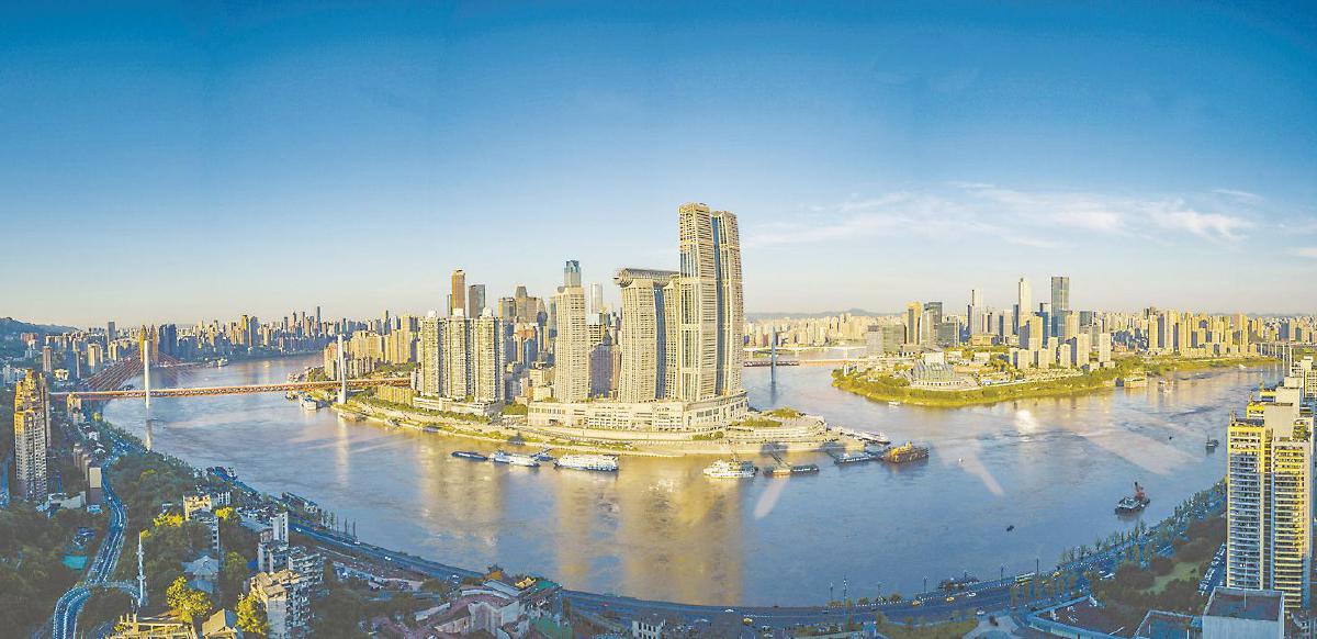 重庆市累计完成“两江四岸”61公里滨江岸线治理,江岸成为城市亮丽的风景线。图为重庆城区南滨路。 余常海摄