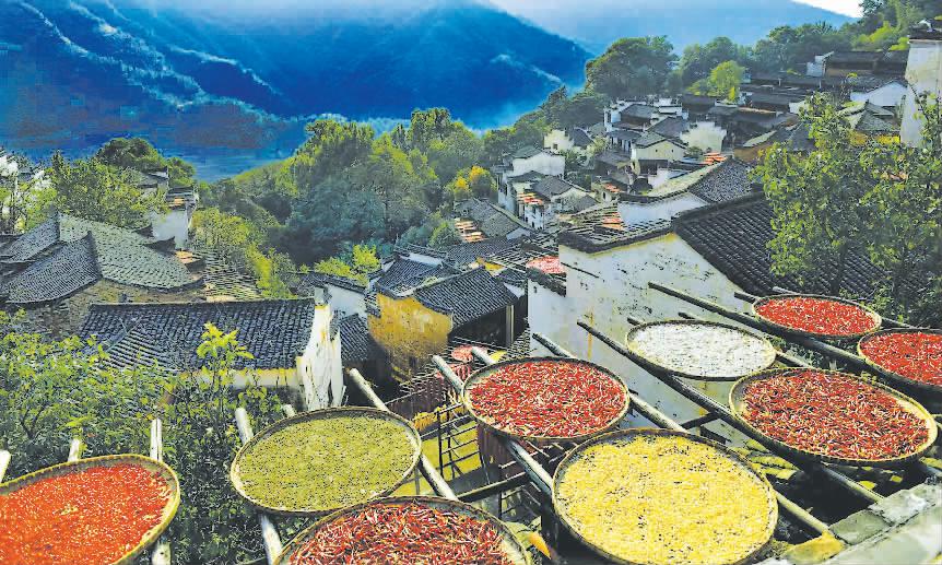 场景:篁岭村民因山势所限,常在窗台屋顶晾晒秋收作物,久而久之,这一农俗演化成了独树一帜的“晒秋”景观,成为“美丽中国符号”之一。 邓小勇摄