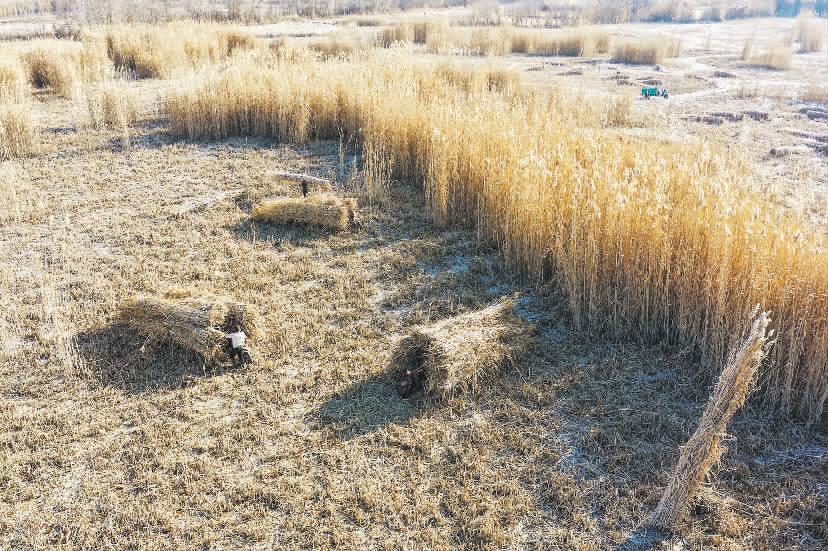 寒冬时节,在塔克拉玛干沙漠南缘的新疆维吾尔自治区和田地区墨玉县,数十台推土机轰鸣作业,推筑阻沙堤、平整沙丘,当地农户忙着收割加工芦苇、铺设草方格,有序推进冬季治沙工程。 新华社供图