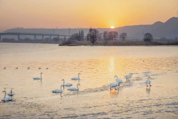 在甘肃省兰州市西固区达川镇的三江口天鹅滩,一望无际的芦苇荡在冬风中轻摇,如期归来的越冬天鹅点缀其间,为静谧流淌的河水增添了几分生动与浪漫。