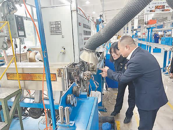 图为执法人员在企业开展现场帮扶。 黄美玲摄