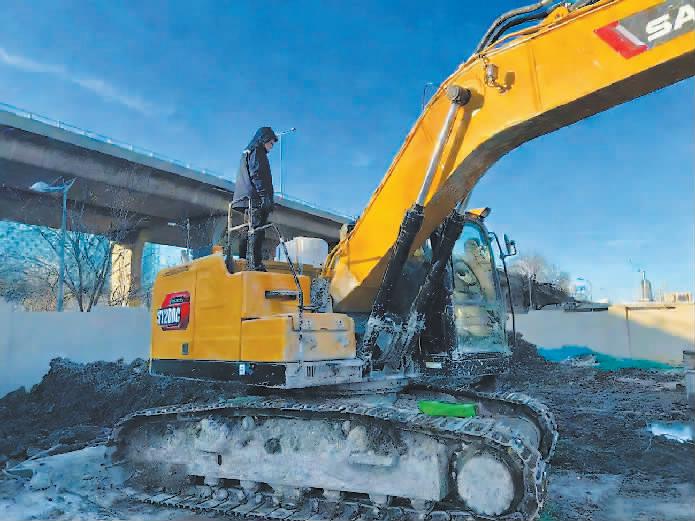 图为天津市河西区生态环境局监测人员对辖区内建筑工地非道路移动机械尾气进行现场实测。 河西区生态环境局供图