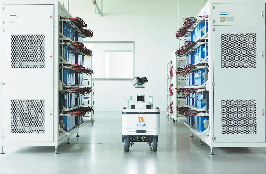 图为北辰先进循环科技(青岛)有限公司的智能巡检机器人在分容车间巡检。