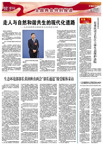 生态环境部部长黄润秋在两会“部长通道”接受媒体采访