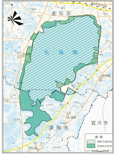 《条例》对滨湖生态空间的范围通过文字描述和附图予以明确。图为长荡湖滨湖生态空间范围示意图。