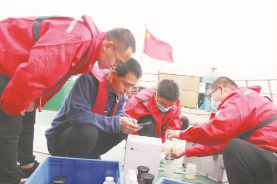 山东省东营市突出重点领域和重点环节,组织开展入海河流消劣、入海排污口排查整治、陆海衔接区域突出环境整治等专项行动,管好直接向海排放污染物的关键“闸口”。图为东营生态环境监测中心工作人员开展入海排污口采样监测。 郑哲摄