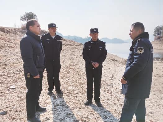 湖北省黄冈市生态环境局蕲春县分局近日与蕲春县公安局大同派出所联合开展执法行动,严厉打击非法釆砂行为。图为执法人员与公安干警在饮用水水源地大同水库上游两处采砂点现场调查、取证,实地了解情况。 詹钧名摄影报道