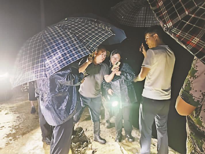 抵达现场后,环境应急人员便冲进大雨之中,他们借助微弱的光线,俯身仔细检查药剂投加系统、出水口状况,争分夺秒排查污染治理设施运行及损毁情况。