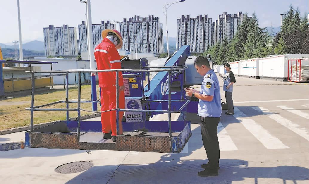 近日,陕西省宝鸡市高新区生态环境中心开展非道路移动机械尾气排放专项检测行动,重点检查机械尾气中的颗粒物、氮氧化物等关键污染物指标,依托“环保码”数字化管理平台,高效核验每台受检机械的备案登记、排放标准等信息。图为执法人员在某石油机械公司对升降机尾气进行检测。侯佳明 王晓占摄影报道