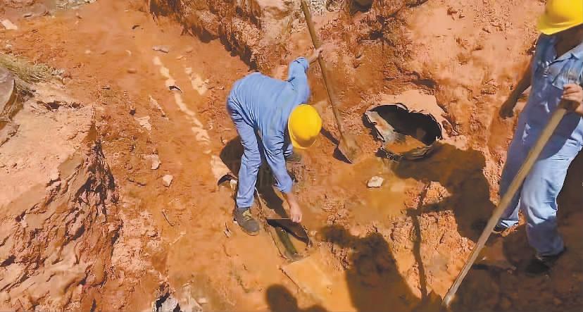 为了查清源头、固定证据,执法人员马上调来暗管探测仪,对香料企业围墙附近过道进行探测,大致锁定209车间西侧路面下有两根管道通向配电箱。同时,调来一台小型挖掘机,对围墙边上的相关管路进行开挖。