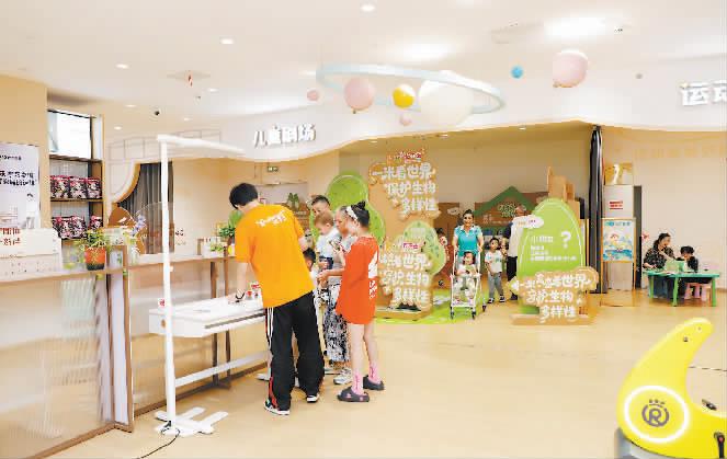 江苏省南京市孩子王建邺门店内,“一米高度看世界,守护生物多样性”环保主题展厅成为不少亲子家庭的打卡地。展厅将商业空间转化为自然教育课堂,从“动物保护屋”的尖顶造型到“拯救地球小任务”互动展板,每处细节都融入了生态保护理念。