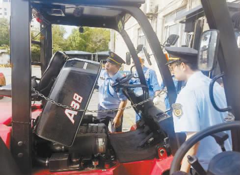 上海市生态环境局执法总队与化工区管委会环保办近期在上海化工区内查处一起非道路移动机械超标排放污染大气案。图为执法现场。 姚有为摄
