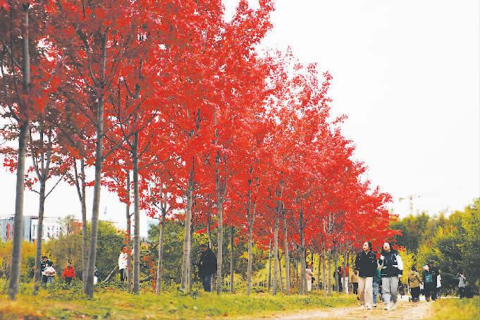 金秋时节,吉林省长春市秋意浓郁,景色如画。图为游人在长春植物园内观赏秋景。