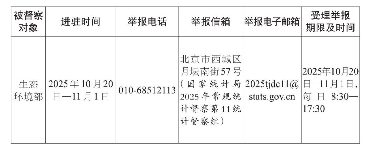 国家统计局2025年常规统计督察第11统计督察组受理举报方式