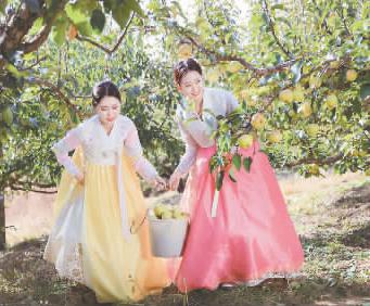 游客体验苹果梨采摘和朝鲜族文化民俗。