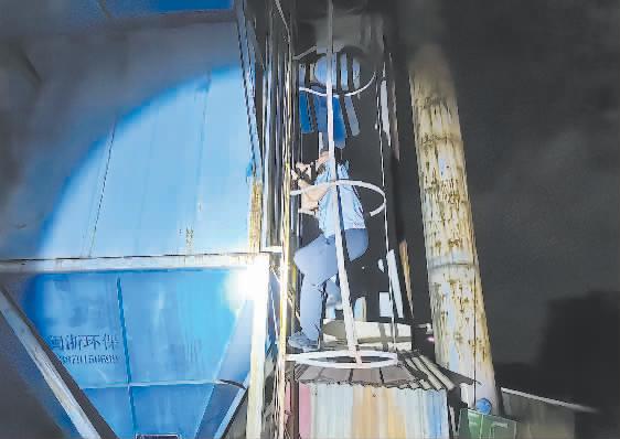 近期,江西省吉安市青原生态环境局持续开展生态环境违法行为查处“利剑行动”,查处企业在夜深、雨夜和节假日等环境监管“空窗期”可能偷排偷放、违规生产等违法行为。图为执法人员夜间检查废气治理设施运行情况。 刘茂林摄