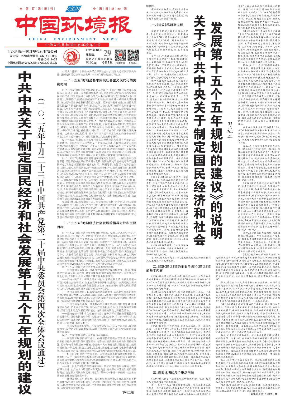 中国共产党第二十届中央委员会第四次全体会议深入分析国际国内形势,就制定国民经济和社会发展“十五五”规划提出以下建议。