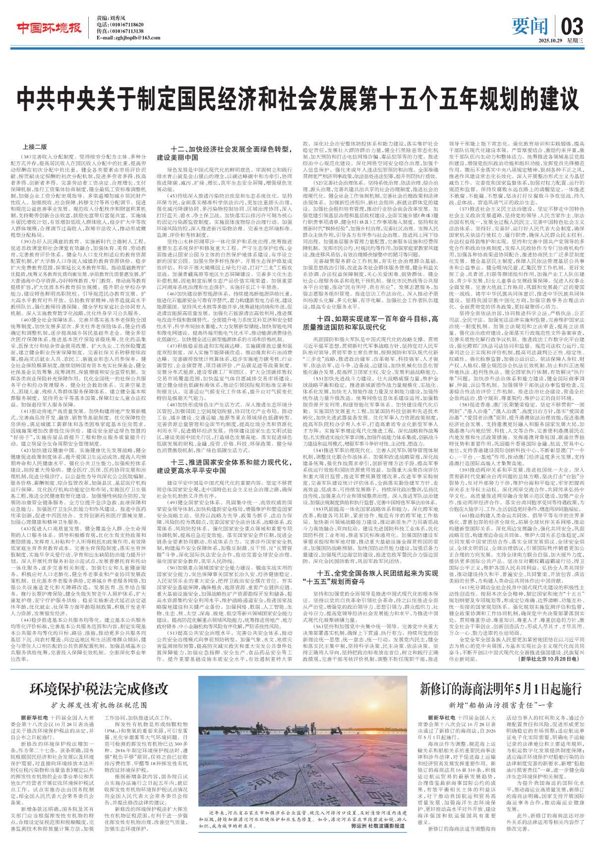 中共中央关于制定国民经济和社会发展第十五个五年规划的建议