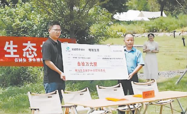 图为下游浙江省湖州市安吉县孝丰镇向安徽省宣城广德市卢村乡兑现首笔考核奖励。 宣城市生态环境局供图