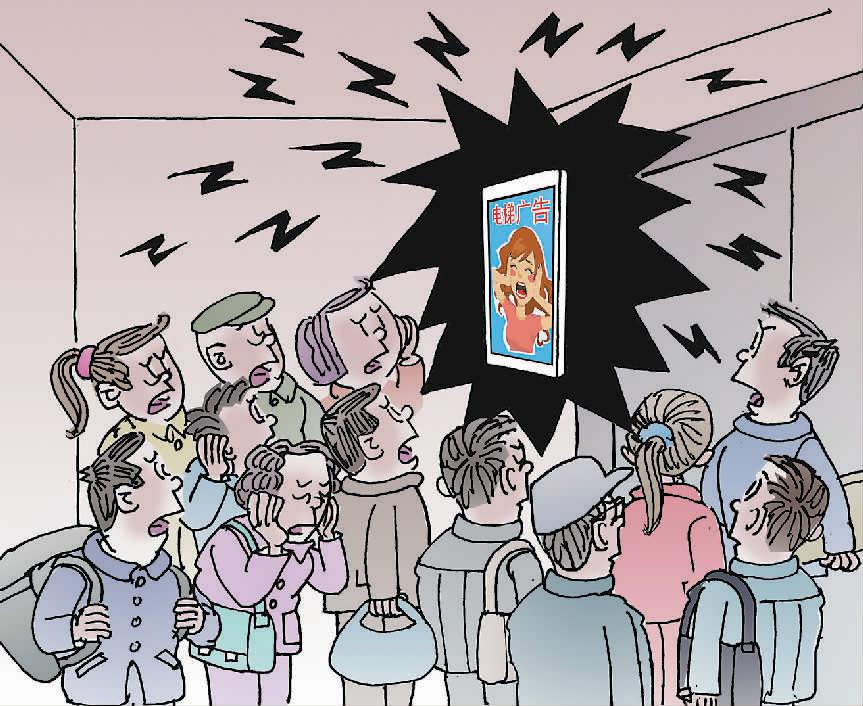 随着技术进步,广告从过去的图文变成了光电声组合的智能屏,但也给公众带来一种隐形的负担。一些电梯广告重复性极高,而电梯空间本就狭小、空气不流通,这个时候,旁边电子屏一直大声地播放各类广告,其实也是一种噪声侵扰。 蒋跃新制图
