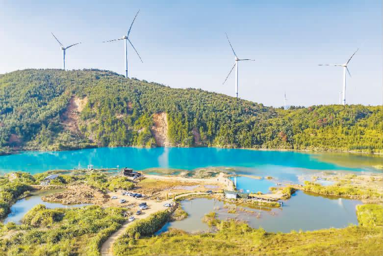 11月16日,位于广西壮族自治区富川瑶族自治县白沙镇的可达蓝湖,湛蓝湖水、湿地、风车与蓝天互相映衬,美景如画,吸引不少游客前来游玩打卡。据悉,此处曾是废弃矿区的矿坑和荒废地,经过生态修复与土地综合整治后获得重生。 黄胜林摄