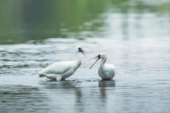 ▶图为出现在红海湾的黑脸琵鹭。惠州市生态环境局供图