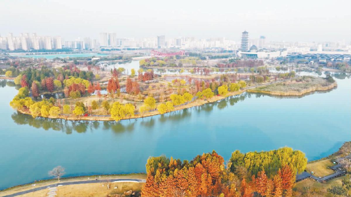 江苏省扬州运河三湾公园前身是臭水沟,周围都是污染型工厂,经过整治,这里变成了大运河博物馆、大运河国家文化园和三湾湿地公园。图为扬州运河三湾公园景色。