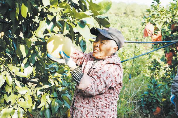 近日,江西省上饶市广丰马家柚迎来丰收季,果农们忙着采摘金黄的柚子。曾经的荒坡秃岭,如今已被连绵的柚林覆盖。柚林不仅成为当地群众的“绿色银行”,更在防风固土、涵养水源中扮靓了乡村。 李春仙摄