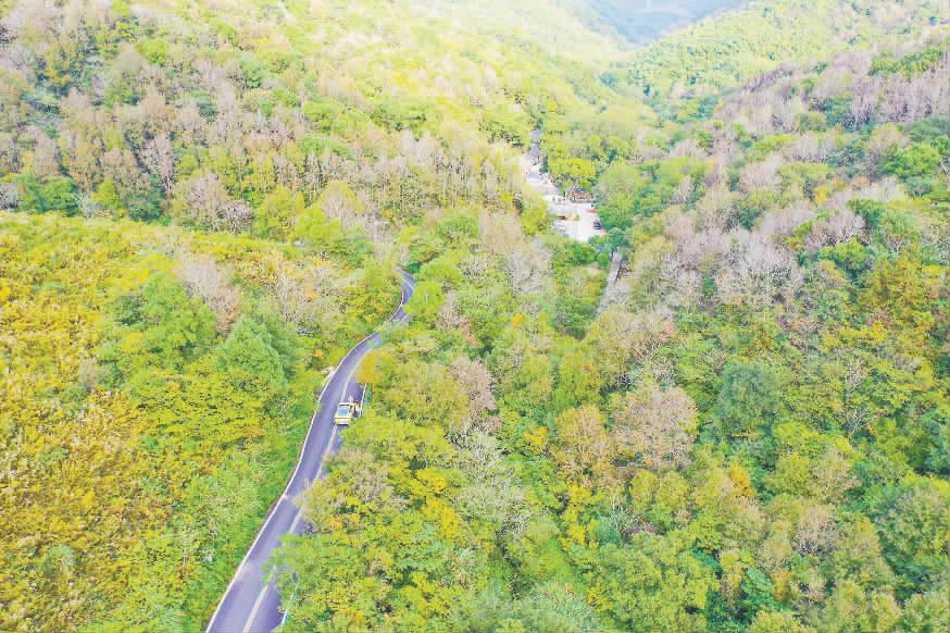 图为浙江省舟山市定海区东海百里文廊寺岭段,彩林斑斓。