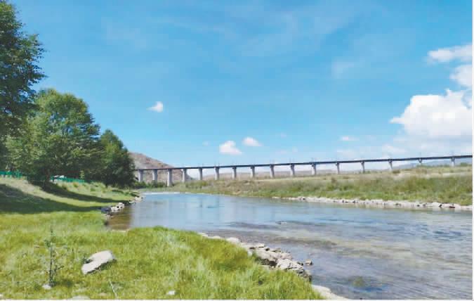 图为经水生态修复治理后的湟水河干流海晏县金滩乡道阳村以东段。