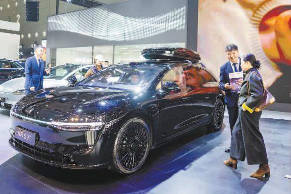 12月10日,第二十一届长沙国际车展在湖南省长沙国际会展中心拉开帷幕。本届车展为期六天,聚焦电动化、智能化新趋势,吸引了国内外70余个汽车品牌近千款车型参展。图为观众在了解参展车辆。新华社供图
