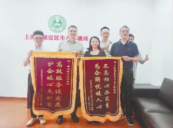 图为企业为嘉定区生态环境局送来锦旗。