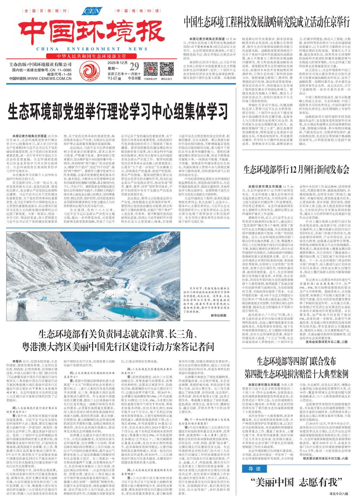 生态环境部有关负责同志就京津冀、长三角、粤港澳大湾区美丽中国先行区建设行动方案答记者问