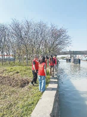 图为民间河长在南湖区海盐塘巡河。