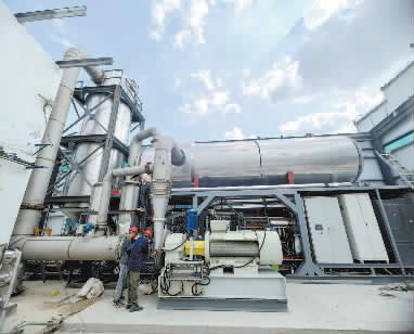 图为冠臻环保工作人员正在为浓缩液处理项目进行关键设备的安装与调试。