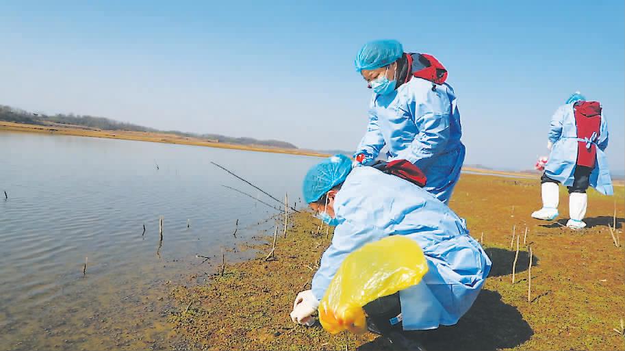 鄱阳湖湖口水域近日迎来候鸟迁徙高峰期,40余种、近3万只候鸟陆续抵达这里越冬。江西鄱阳湖国家级自然保护区管理局湖口保护监测站联合湖口县疾控中心,开启了一场特殊的候鸟“体检”。工作人员穿梭在湿地滩涂间,收集候鸟新鲜粪便,通过粪便样本的病原微生物检测分析,系统掌握越冬候鸟的迁徙动态和种群健康状况。 王焰摄