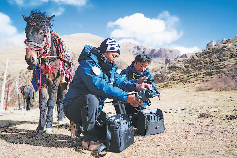 在三江源国家公园澜沧江源园区核心区,依托“一户一岗”生态管护公益岗位机制,牧民也成了生态管护员,他们一边捡拾垃圾、监测水源、观察植被,一边用镜头捕捉雪豹、岩羊等野生动物的身影。如今,野生动物日渐增多,草原垃圾踪迹难寻,澜沧江畔的生态画卷愈发鲜活灵动。 新华社供图