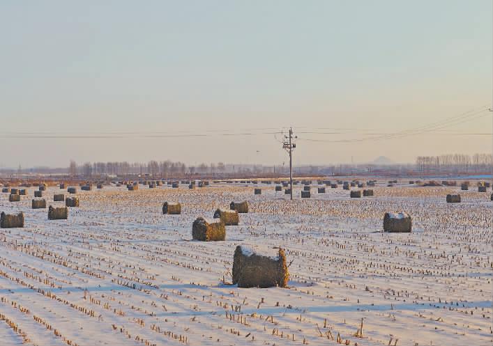 在吉林省长春市朝阳区永春镇农丰村,雪后农田里打捆的秸秆卷整齐有序。近年来,当地利用“技防+人防”手段,强化秸秆禁烧管控。本报记者潘瑜摄
