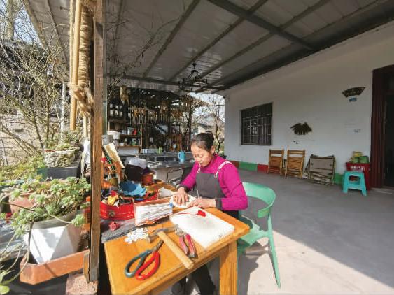 村民甘遐学的皮革手工室就在将军村的角落,甚是安静,恰恰适合来这里享受乡村恬静、户外野趣的游客。“用现在时髦的话说,我也是‘主理人’了。”虽年过半百,但甘遐学乐于接受新鲜事物,曾经做过30年皮鞋厂女工的她,随着艺术院落建成,她留在家乡工作,不仅当咖啡师,还拾起在皮鞋厂工作的老本行,成为一名“皮革艺人”,如今她又把自家的院落拾掇出来,成为了民宿和“皮革工作室”的“主理人”。