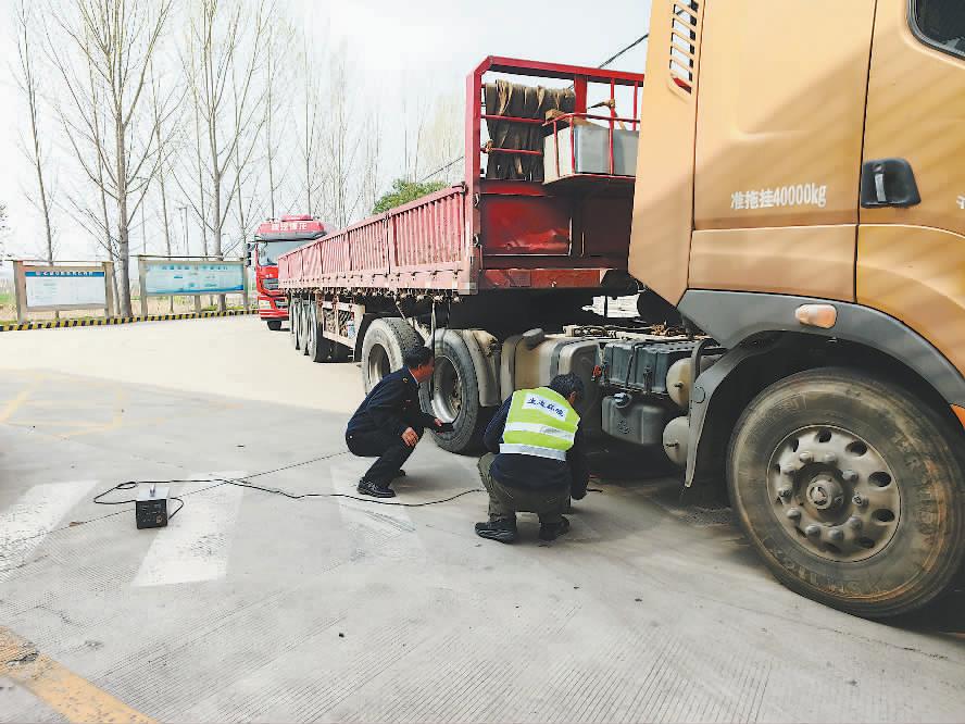 山东省济宁市生态环境局曲阜市分局近日联合公安、交通部门,聚焦移动污染源管控,持续开展机动车路检路查专项行动。图为检查现场。
